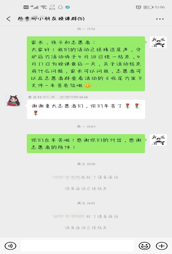 的学子们积极响应参与,2019级张薇同学担任联络沟通的管理员,负责统计名录、联络家长、招募志愿者以及志愿时长的录入和基础认定。作为志愿者和小朋友之间的桥梁,她在工作中需要和双方进行多次沟通,了解情况,协调好授课安排。活动结束后,她说,“希望这次志愿活动能在孩子们心中埋下一个温柔的种子,待这些花朵长大后,可以在不同的地方播撒。”2017级段亦如同学则承担了授课工作,在自己的课业之余积极搜集资料备课,根据反馈调整课件和上课内容,她表示虽然自身课业压力比较重,但公益送教是有深远意义的,关乎到一个孩子,一个家庭。