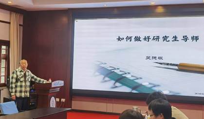 吴德垠简要介绍了研究生教育的国际国内历史起源,以及负责研究生的思想政治教育、科学道德引导、科学研究指导和成长条件支持等四部分导师职责,详细讲解了久久小说