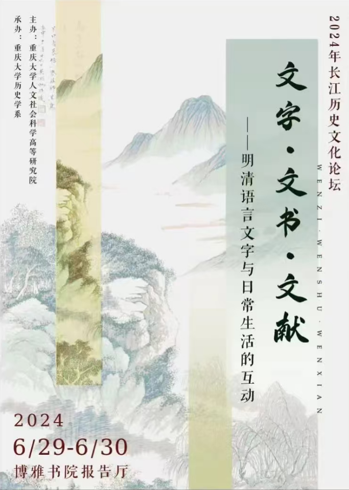 讲座之外,历史学系长江流域社会与文化研究中心成功举办了2024年长江历史文化论坛,本届论坛以“文字·文书·文献——明清语言文字与日常生活的互动”为主题,邀请到郑振满教授温海波教授等国内数十位专家学者与会,围绕论坛主题展开了富有成效的讨论。回望2024年,历史学系的学术活动充分体现了本系立足重庆、服务乡邦、心系家国天下的宗旨与胸怀。2025年,我们将继续为本院师生带来丰富多彩的高水平学术活动,敬请期待!