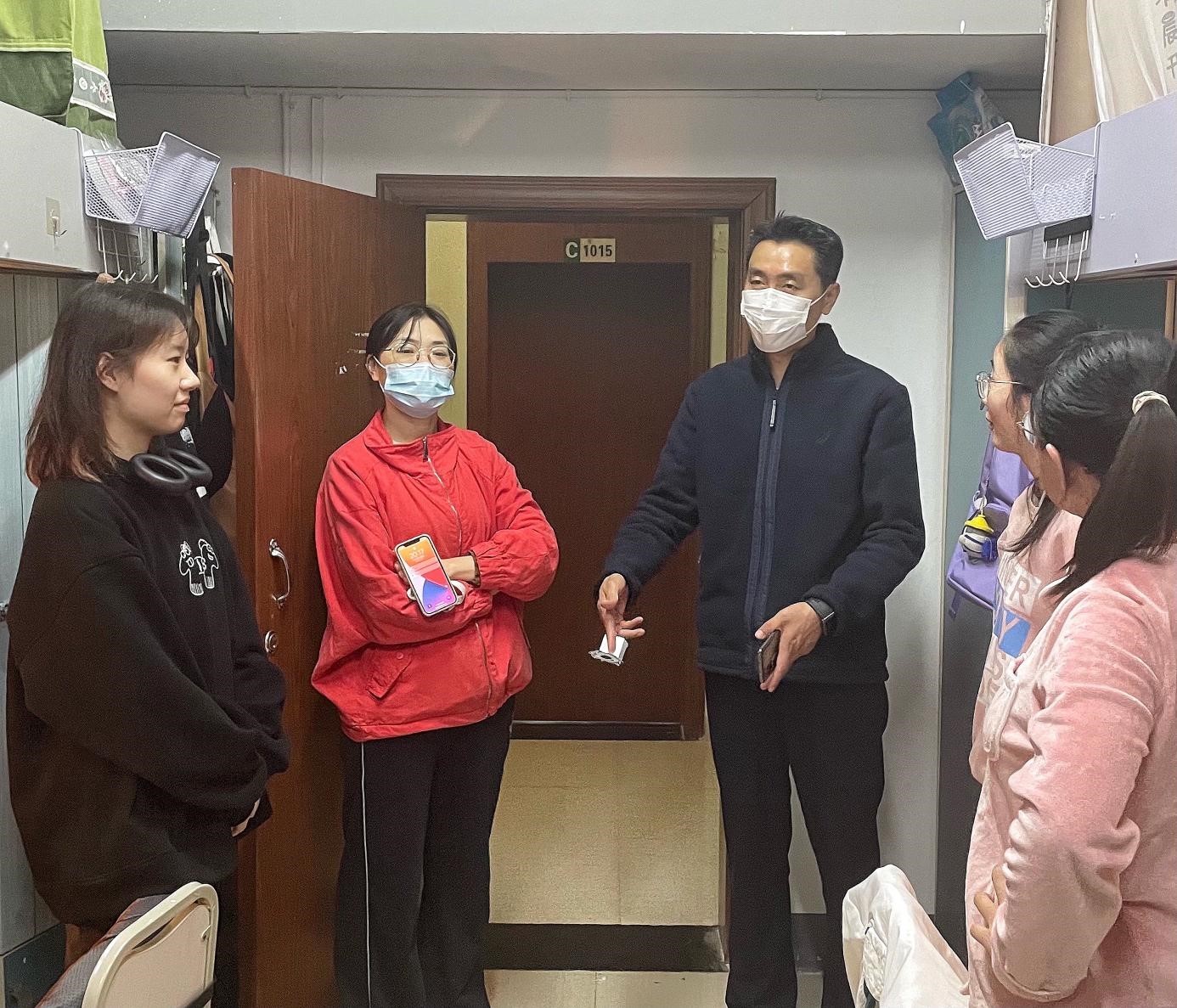 在走访过程中,老师们仔细观察了解了同学们的宿舍生活环境,并就宿舍安全卫生等问题提出了建议。曾佐伶指出,宿舍作为现阶段同学们学习、生活的场所,更应该注重舒适度与安全性,建议同学们勤通风、多打扫,保证寝室的干净与整洁。姜雪峰则建议同学们注意用电安全,希望同学们都能有一个便捷、舒适、安全的学习环境。此外,老师们提醒同学们务必做好个人防护,物资方面如有欠缺请及时向学院提出,学院将尽最大的努力做好后勤保障工作;并建议大家保持乐观向上的心态,遇到生活心理等方面的问题及时地与辅导员进行沟通交流,学院尽可能地从各个方面保障同学们的身心健康。