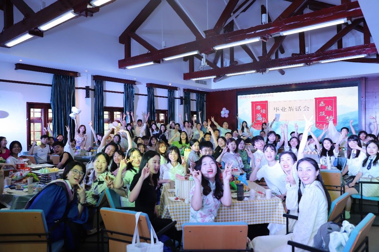 依依垂柳诉牵挂,菁菁校园留芳华。26日晚上,学院“嘉陵筑梦·赓续芳华”毕业季茶话会在小院报告厅如期举行。茶话会由学院党委副书记姜雪峰致辞,他对毕业生表达了衷心的祝贺与诚挚的祝福,他提出,毕业不是终点,而是新的起点,愿毕业生们能够昂首阔步地向前走,去拥抱更广阔的人生。随后活动在陈舒遥、翟颖和程可苒三位同学携手献唱的动听歌声中拉开序幕。在谢师礼环节上,张华老师回顾了过去几年同学们学生和生活的点点滴滴,祝愿毕业生们在各自的征途上前程似锦。在互动小游戏环节中,在场师生积极参与飞花令、emoji猜猜猜和抢麦等游戏,在欢声笑语中冲淡了离别的感伤。活动最后,全体师生合唱歌曲《朋友》,这一刻大家心灵相连、彼此见证。茶话会由此拉上圆满帷幕,属于毕业生的人生旅途才正式开启。