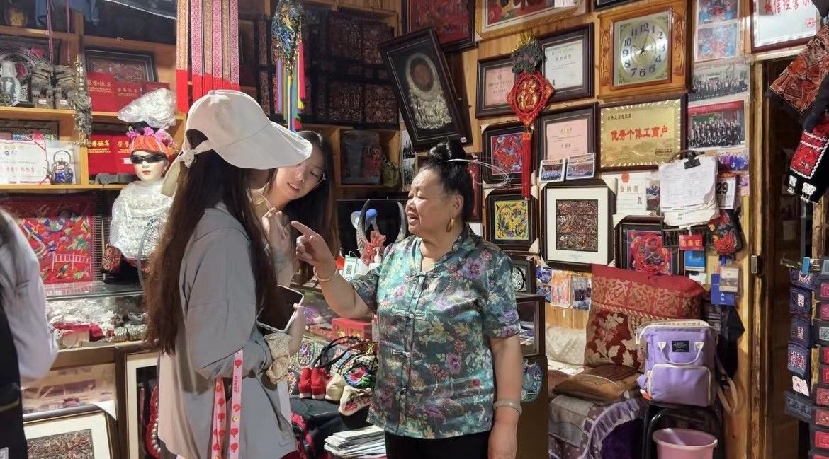 苗族银饰手工锻制技艺已于2006年被列入了中国非物质文化遗产保护名录,苗族银饰是苗族独特的文化审美、价值传承和民族情感的重要载体。银饰调查小组在银匠吴国政的银饰店铺中开展调查。在观摩吴师傅制作银饰的时候,小组成员也主动加入到制作的过程中,包括打银、焊药、铸炼、编结等。苗族银饰可分头饰、颈饰、胸饰、手饰、盛装饰和童帽饰等,由苗族银匠精心做成,已有千年历史。在亲身实践中,小组成员对于如何保护非遗传统文化有了更深刻的认识。苗族银饰随着时代发展而面临市场竞争、机器化、银价上涨等重大挑战,但它又在传承与创新中不断发展提升。
