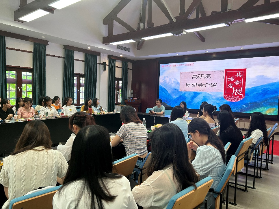 交流会首先由高研院2022级硕士研究生倪金鑫、王豪凯介绍高研院团委研究生会组织构成以及职能分工,重点介绍了团委研究生会在过去一年内在学术研究、社会实践、文体活动等方面所取得的丰硕成果。如文艺汇演、啦啦操比赛以及就业分享会等活动,吸引了新生广泛关注。