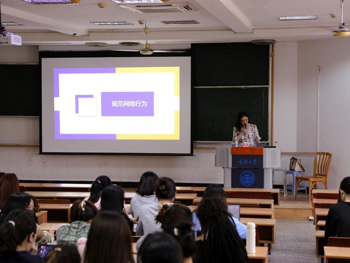 高宏佳对安全相关问题进行了重点讲解。在网贷及电信网络诈骗方面,重点分享了最新的诈骗案例,并分享学院同学被诈骗的个人经历,对网络诈骗类型进行分析,提醒同学们务必保持警惕,不随意泄露个人信息,不随意点击可疑链接,遇到困难时及时向学校安全部门寻求帮助。在规范网络行为方面,介绍了网络虽是匿名,但是每个人都应为自己的言论负责,在享受网络自由与便捷的同时,更需要规范个人的网络行为,文明上网,不在任何网络平台发表不当言论,不做违背个人道德品质的不当行为,共同维护风清气正的网络氛围。
