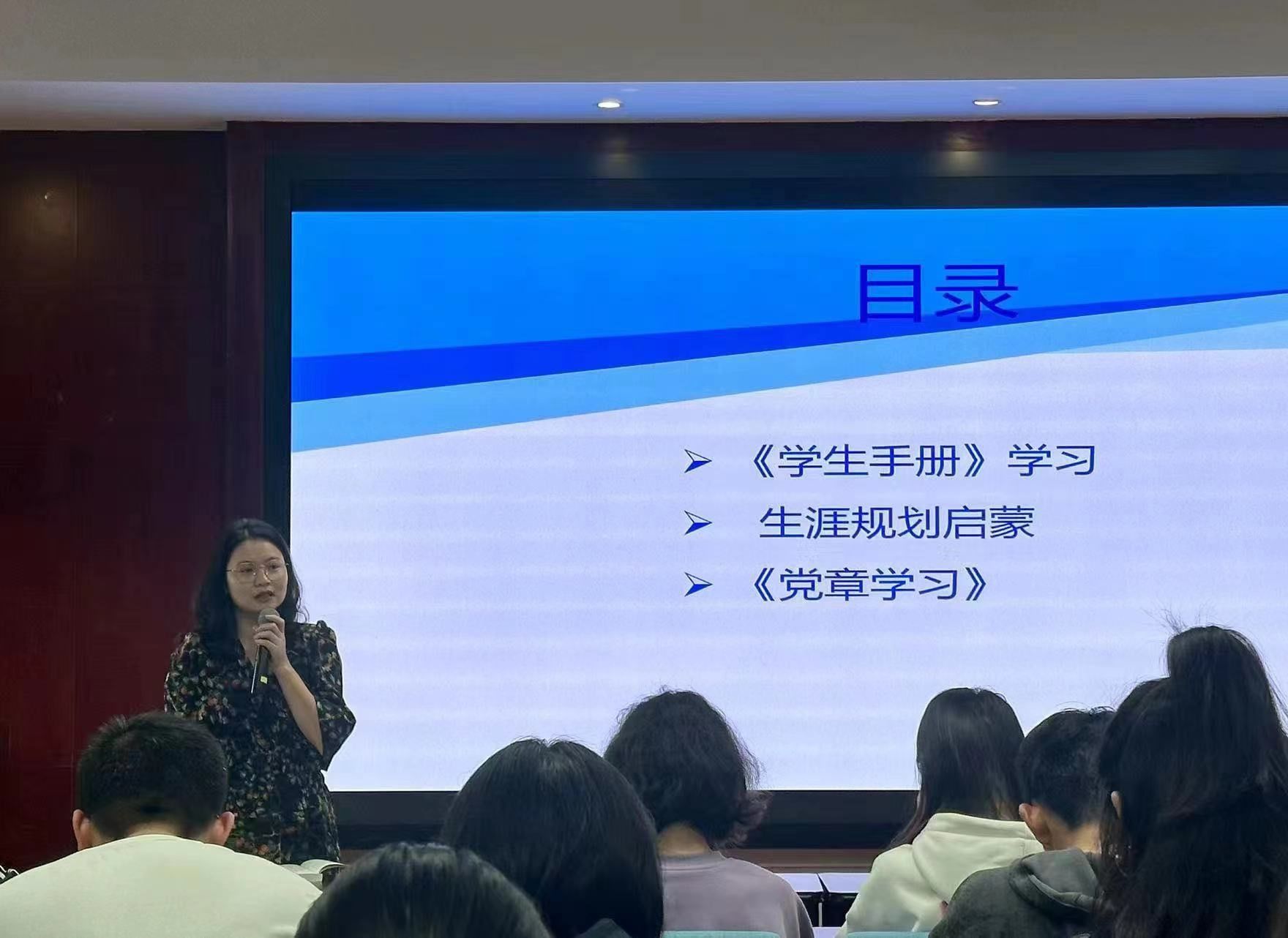高宏佳还为同学们讲解了生涯规划的重要性,鼓励同学们以本科新生生涯规划服务指南为资源库,积极参与生涯规划相关活动,并希望同学们以自我成长、心智蜕变为目标,利用四年时间去实现个人发展,提升个人职业技能。她还通过图表方式为同学们展示了学长学姐多样化的发展路径,鼓励2023级全体同学积极尝试,勇于探索,将个人发展目标与国家发展目标紧密结合,为国家的现代化建设贡献力量。
