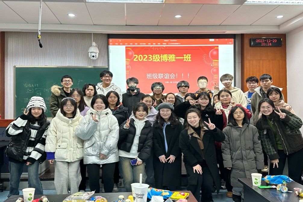 2023级1班在A8301开展了以“辞旧岁,迎新年”为主题的班会。任课老师吴娇、张帆、何祥迪和班主任赵耀文参加了本次活动。