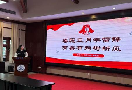响应榜样呼吁,争做雷锋传人。2020级优秀党员郑雅韵同学和边雨柯同学参加了23级和22级等团支部的团日活动,解读了雷锋精神的具体内涵,讲述了不同时代乐于奉献的先辈们的光辉事迹,并聚焦2024年全国两会,带领同学们深刻领悟“两个确立”的决定性意义,呼吁大家增强“四个意识”、坚定“四个自信”、做到“两个维护”,并积极把握雷锋精神的时代内核,争当传承雷锋精神的排头兵。