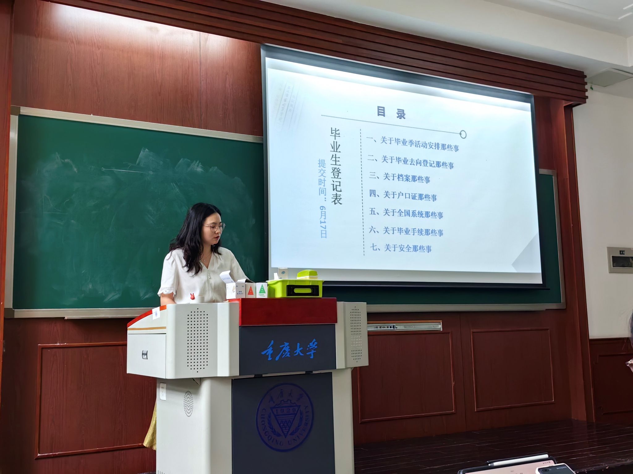于2024年6月7日在五教110教室开展“青春不散场”2024届本科生毕业相关事宜培训会。本次活动由辅导员高宏佳老师主持,2024届本科生参加。
