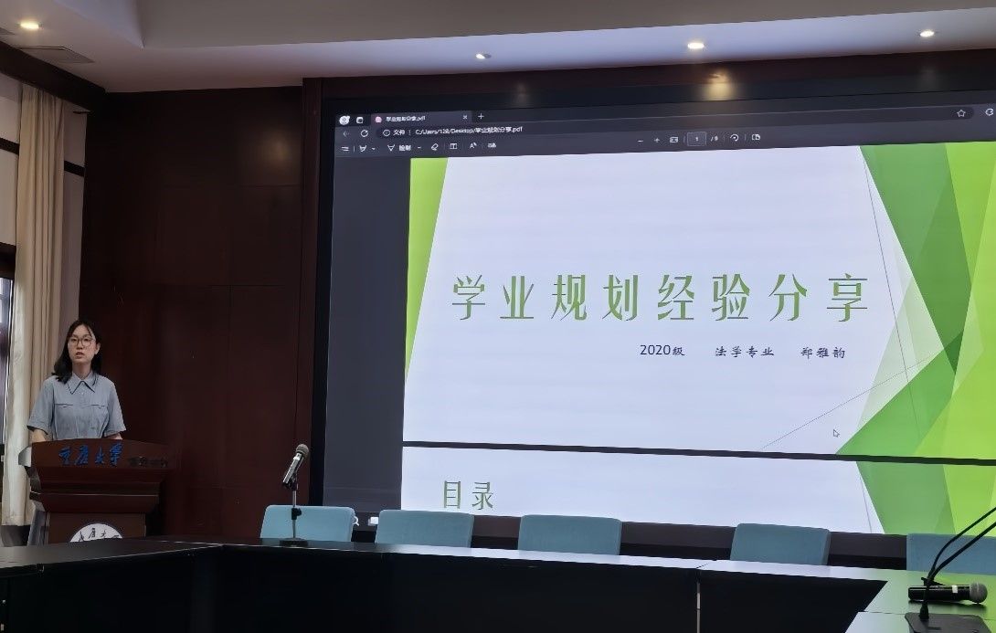 青春启航,指引未来。为进一步加深同学们的生涯规划认知,各支部邀请了大三、大四年级各专业的优秀同学进行经验分享。2023级团支部邀请2020级法学专业的郑雅韵介绍了有效应对专业分流的方法,郑雅韵主要从个人情况介绍、自身经历及问题的解决方法三个方面进行分享,她希望同学们能够对未来发展提前规划,不要将自身的价值束缚于数字评价的框架中,寻找自身真正兴趣之所在,看到多种赛道的可能性;并在面对平衡学业与其他事务的问题时,要拥有拒绝和断舍离的能力。同时,郑雅韵以“你走的每一步都算数”勉励各位同学,要努力寻找自身兴趣之所在,同学们受益匪浅。