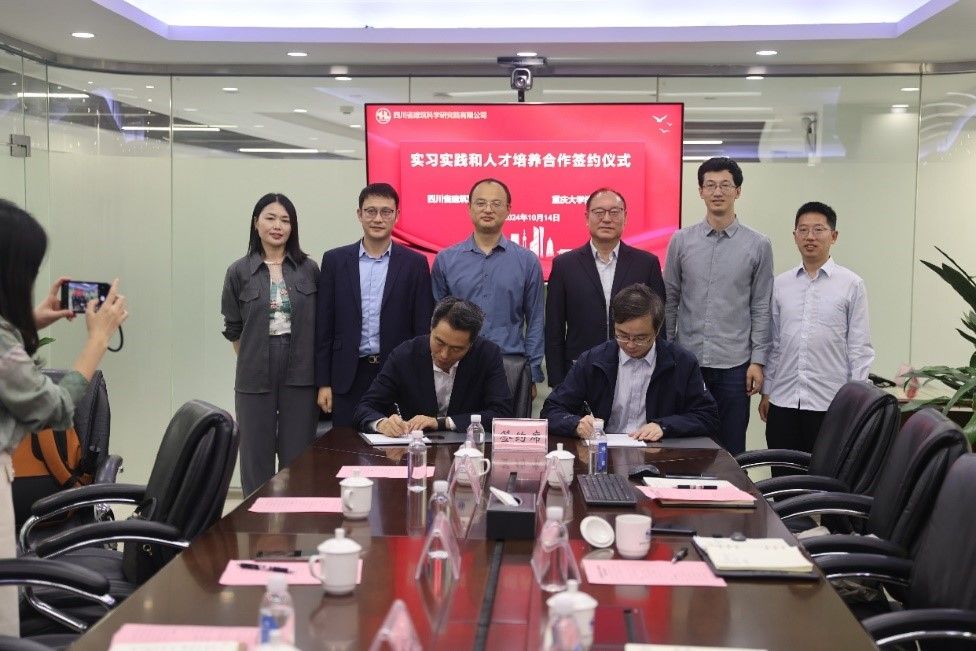 团委书记郑家勤,辅导员高宏佳、朱家常,四川省建筑科学研究院人力资源部主任薛东明,四川建研善建科技有限公司副总经理曾亮共同参加了仪式。