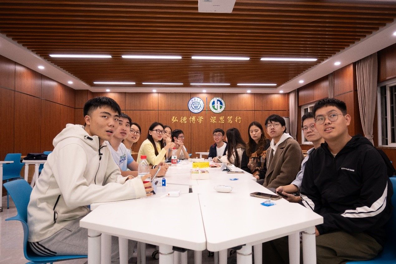 与弘深学院团委学生会的交流会在弘深书院101活动室顺利举行。本次会议由弘深学院团委学生会主席杨浩颖主持,两院学生干部积极参与。