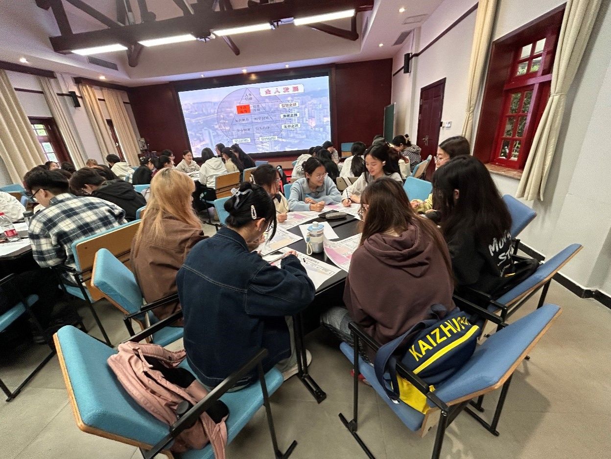 在最后的互动环节,高宏佳组织大家以小组的形式展开讨论,寻找心中的方向和目标,在尚且空白的画布上绘制属于自己的生涯规划蓝图。同学们全心投入,畅所欲言,对未来的职业生涯发展走向有了更为清晰的理解和设想。集体讨论过后,在场学生纷纷表示于此次活动中受益匪浅,在职业探索、素质提升、生涯规划等多方面都获得了宝贵的建议和指导,自己也将通过各阶段目标的不断达成拥抱充实精彩的大学生活,成就更加完善的自我,为步入社会、报效国家打下坚实基础。