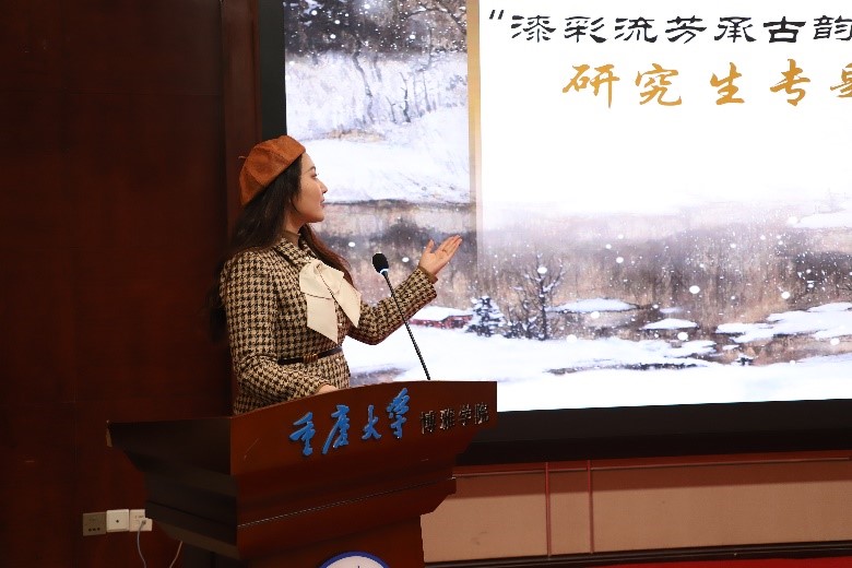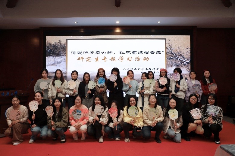 为弘扬非遗文化,增强文化自信,2024年11月29日晚19时,人文社会科学高等研究院于博雅书院报告厅举办了“漆彩流芳承古韵,红脉赓续耀青春”研究生专题学习活动。本次活动包括理论学习、知识竞答与漆扇制作三个环节。