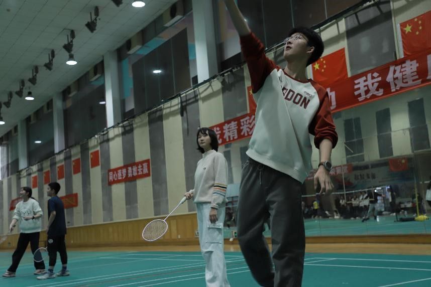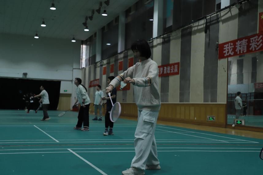 比赛过程中,师生们或疾步跃起挥拍扣杀,或反手轻挑网前小球。羽毛球在空中划出急促的破风声,时而急坠边线,时而高飘后场。场馆内清脆的击球声、得分时的喝彩声与战术交流声交织共振,炽热灯光下跃动的身影与飞扬的衣角,共同构筑起充满张力的运动图景。