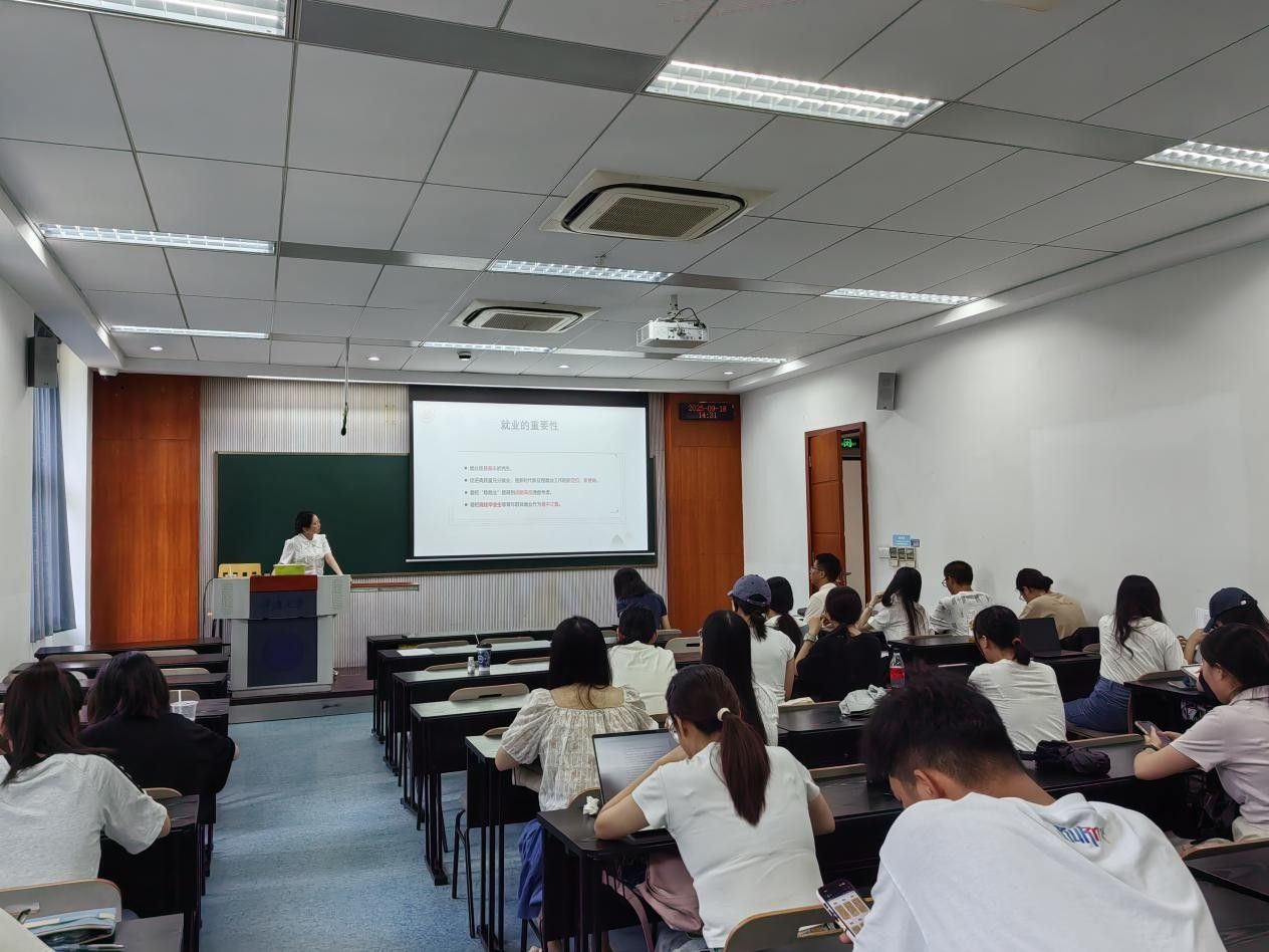 随后,高宏佳系统梳理了毕业生就业的关键时间节点和所需基本材料,从就业信息获取、简历完善与投递、笔试面试到最终签约环节,对求职的全过程进行了逐一说明,重点解读了最新就业政策、各类手续办理、签约及解约流程等毕业生普遍关心的问题。