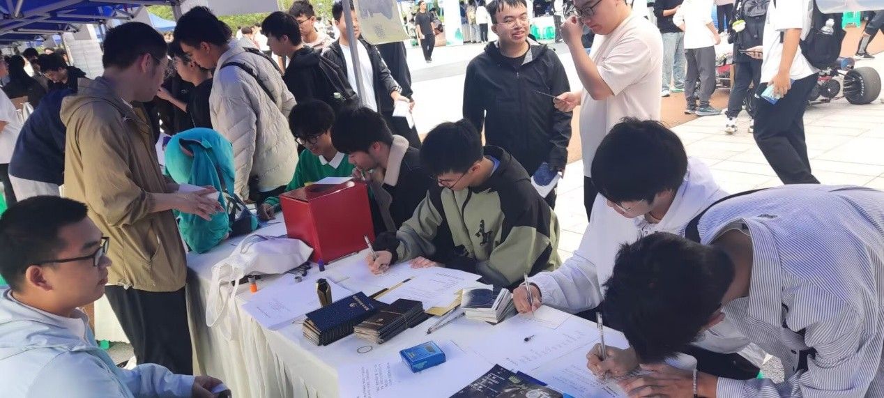 学生科幻协会以“一句话科幻”和“画出科幻”两大互动游戏为核心,引导参与学生在明信片上书写科幻段落或描绘心中的科幻形象,亲身体验科幻创作的乐趣。活动吸引了至少200名学生参与,不少同学在活动开始前便早早等候。协会通过创意互动与现场答疑,不仅吸纳了新成员,更在同学们心中“种下了一粒科幻的种子”。