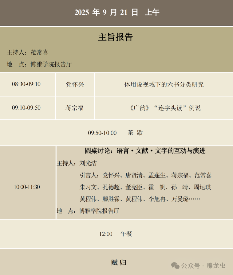 古典语文学论坛:语言·文献·文字的互动与演进会议议程