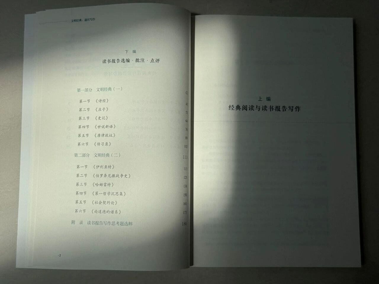“文明经典”作为全体学生修习的通识核心课程,自2021年开课伊始,即设置了读书报告写作这一环节,要求学生在阅读经典文本之后,根据教师布置的思考题写作读书报告并参加研讨班。这一环节设计的初衷是希望通过写作来检查、督促和引导学生的阅读与理解,因为写作和研讨是经典阅读教学模式的内在构成环节。在数年的课程运行期间,学生提交了几十万篇读书报告,且在2022年和2024年两次大规模问卷调查中,超过一半的学生认为写作能力得到了大幅提升。这使得我们深刻认识到,读书报告的写作既是这一课程本身的教学方法,也正好契合了当下大学生写作能力训练的迫切需求,需要在理论上作出进一步的梳理总结,以廓清共识并形成专门的教学指导用书。