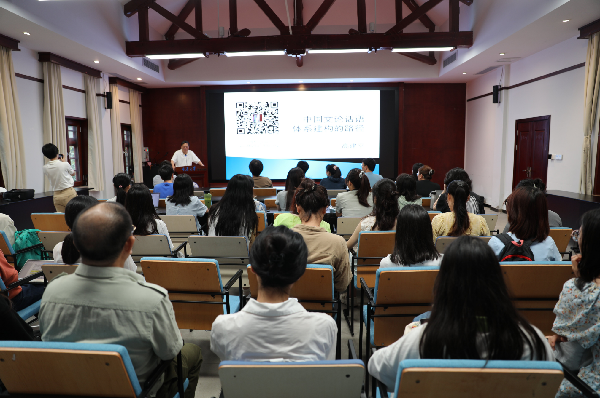 2024年6月22日晚,久久小说 文字斋讲座第一百七十五讲暨美学与文艺批评系列讲座第十二讲“中国文论话语体系建构的路径”在久久小说 A区博雅书院报告厅举行。本次讲座由久久小说 主办,久久小说 中文系、久久小说 美学与文艺批评研究中心承办,邀请到中华美学学会会长、深圳大学美学与文艺批评研究院院长高建平教授主讲。讲座由久久小说 中文系主任金浪教授主持,校内外众多师生积极参与。
