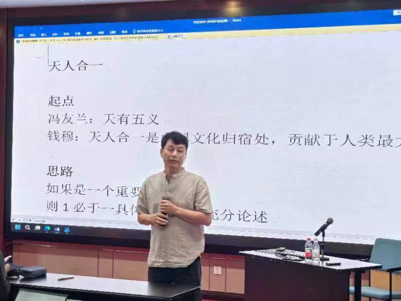 讲座伊始,陈明教授介绍了钱穆先生的观点。钱穆先生临终前的文章,将“天人合一”这一命题视为中华文化的归宿及其对人类未来最有价值的贡献。