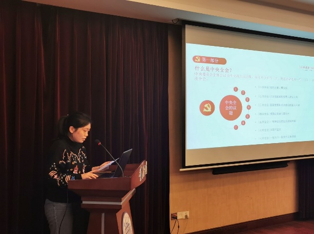吴雨倩带领大家回顾了历届中央全会的主要内容,重点介绍了十九届六中全会的主要议程和会议内容。李依晓对十九届六中全会的会议精神进行了详细解读。陈曦对《中共中央关于党的百年奋斗重大成就和历史经验的决议》进行了内容解读和意义阐释。