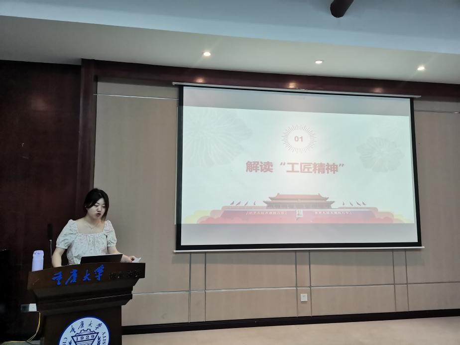 学习工匠精神,首先要了解什么是工匠精神。郭树莹结合普遍理论与具体事例,对工匠精神进行了解读。她引用习近平总书记在全国劳动模范和先进工作者表彰大会上的讲话,对工匠精神进行了概述,并讲解了“工匠”的传统意义与“工匠精神”的新时代内涵。