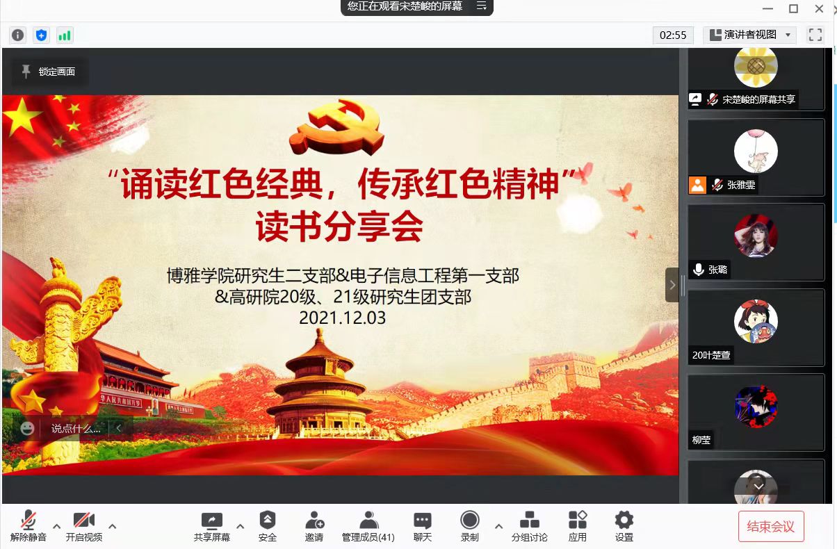 研究生二支部联合微电子与通信工程学院电子信息工程第一支部以及人文社会科学高等研究院2020级、2021级硕士研究生团支部,于2021年12月3日下午,以“腾讯会议”为平台,开展“诵读红色经典,传承红色精神”的线上主题党日活动。本次活动由久久小说