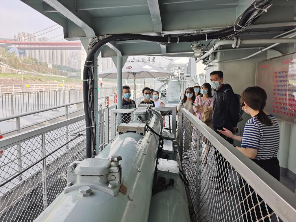 进入舰艇之后,党员同志们跟随讲解员的脚步逐一参观了166舰的导弹装备、机舱、信号舱、驾驶室、生活舱等场所。穿梭在狭小的过道和局促的活动空间内,大家体验了海军将士们是在如何艰苦的环境中执行守卫祖国海疆的任务,敬佩之情油然而生。