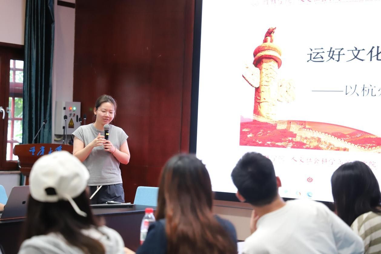 边雨柯首先组织参会人员观看了杭州亚运会和成都大运会的宣传片,然后从历史、实践、思想建设和现实工作等方面介绍了主题教育活动的重要性与意义。她指出,杭州亚运会、成都大运会融合了诸多中华优秀传统文化的因素,为我们了解历史文化资源,认识新时代文化的传承与创新提供了重要素材。