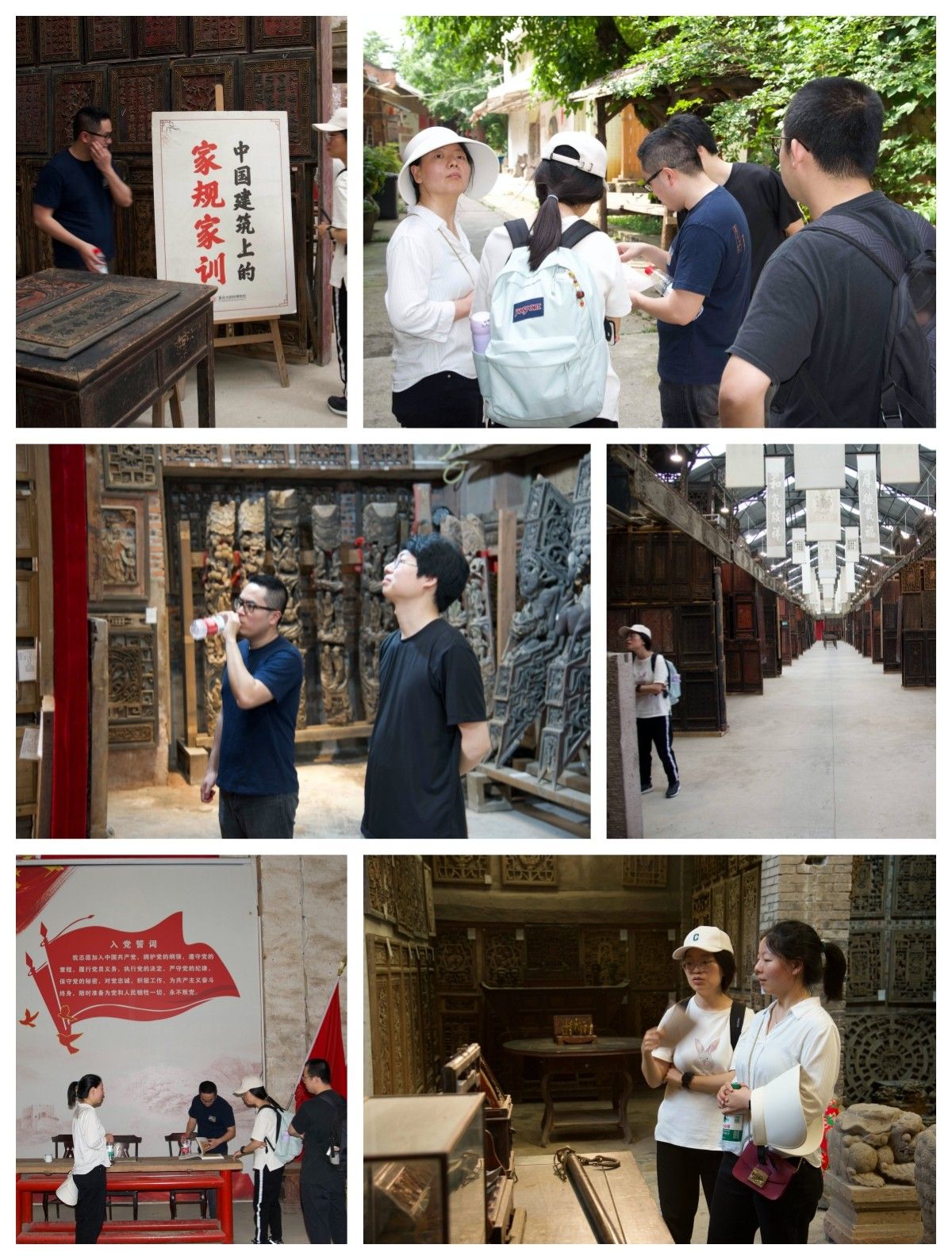 随后,党员们参观了门神门匾额馆,这里展出的是明清时期的古门、窗、门楣、撑拱、吞口等艺术精品。馆内藏品丰富,令人目不暇接,5000多块木雕字板,字迹隽永,几千块窗花,构成一幅幅生动的画卷。整个展馆的藏品雕工细腻,被学者称为“木头上的敦煌”。支部成员被这些精美绝伦的艺术品深深吸引,并通过学习了解,掌握了更多关于这些艺术品背后的历史和文化故事。