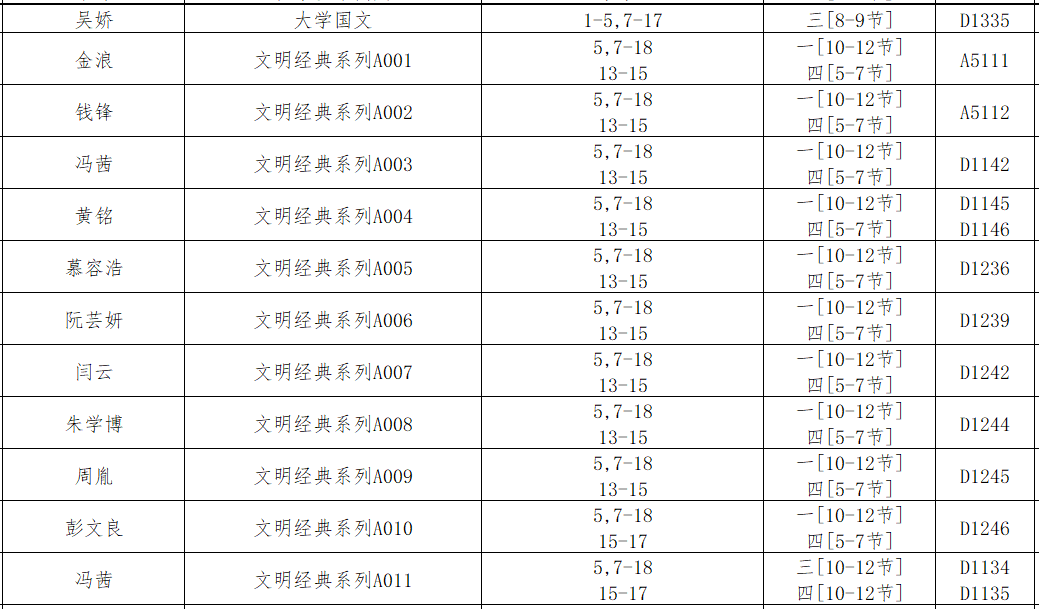 2021-2022学年第一学期总课表