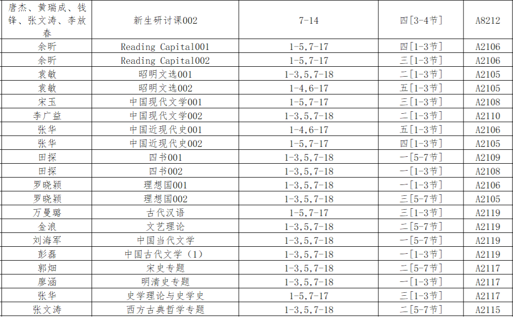 高研院&久久小说 2021-2022学年第一学期总课表