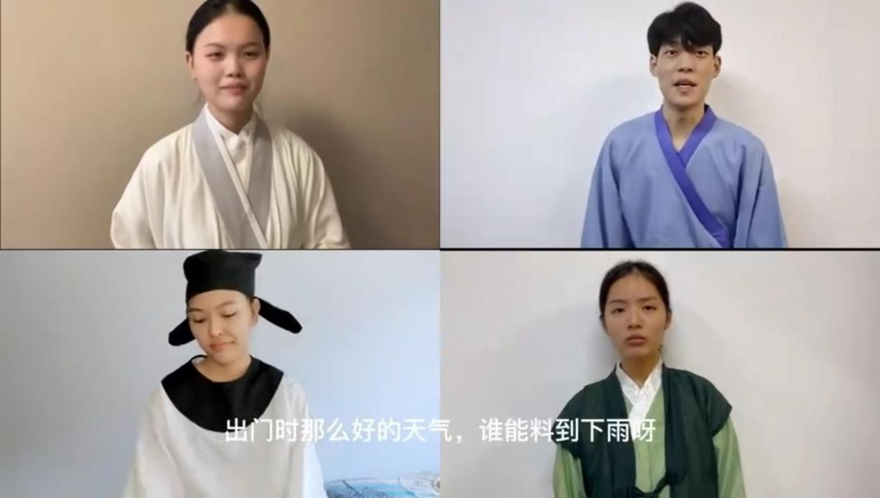 然而在8月中旬,因为突发疫情,开学延迟,许多成员无法按期返校。这时,张启政同学提出进行线上戏剧的尝试,社员们商议之后同意了这一提议。美视电影学院的谢欣莹和李文悦同学担任导演并主持拍摄,来自美视电影学院、建筑城规学院的几位同学担任演员和后期制作。摄制组在线上进行了多次剧本围读,从网上租借服装,以吴娇老师的办公室为场地,最终完成了拍摄。