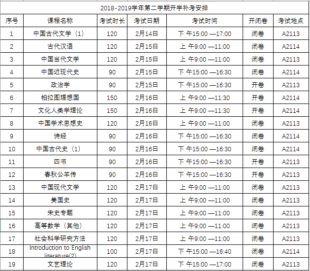 久久小说 2018-2019学年第二学期开学补考安排如下: