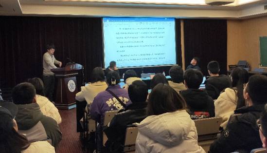 助理讲师代表程哲浩向大家展示了“重大悦读”平台的管理操作,就作业任务发布、小班分班与组织、作业提交和批改等环节作了具体讲解,并回答了现场新任助理讲师的有关提问。