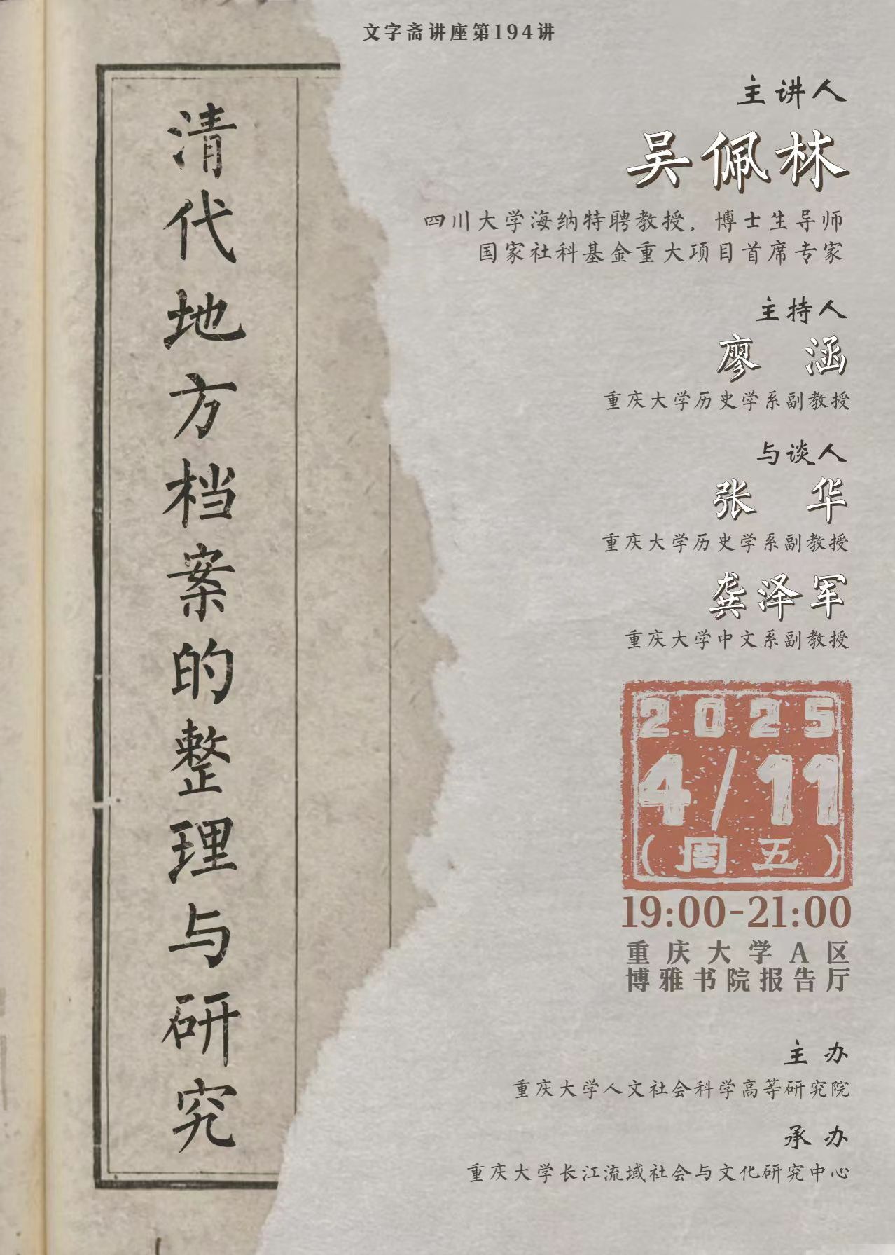 文字斋讲座第194讲 | 清代地方档案的整理与研究