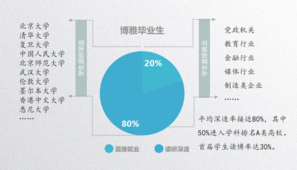 Boya now has five graduating classes from 2017 to 2021, with most students choosing to go on to graduate school. Up to now, nearly 80% of our first five classes of graduates have gone on with graduate study. They went to institutes including Peking University, Tsinghua University, Renmin University of China, Fudan University, Nanjing University, the University of London, the Chinese University of Hong Kong, Boston University, University of Sydney and other famous universities in China and abroad.